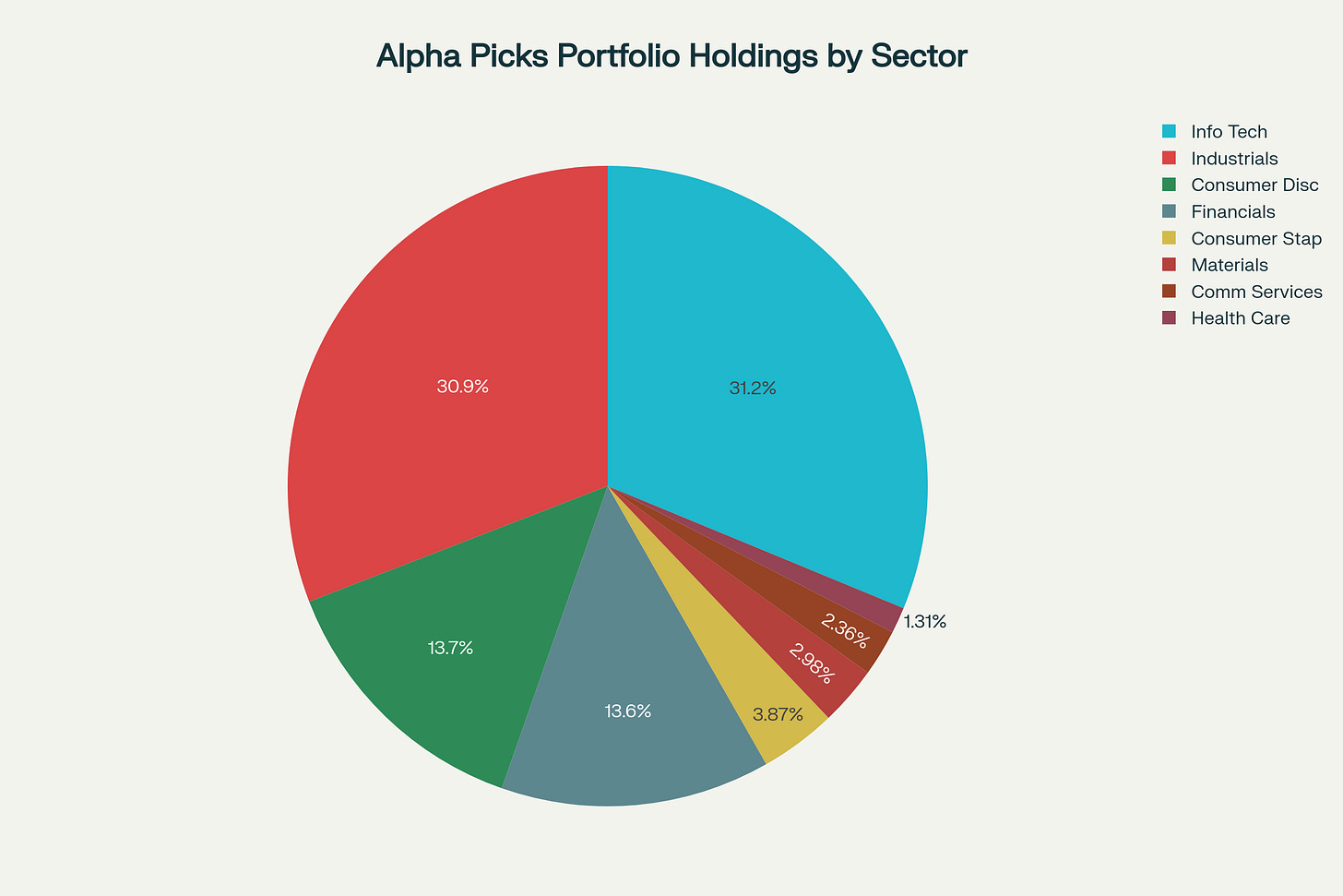 Here is a breakdown of the total portfolio holding % in each sector for the Seeking Alpha Alpha Picks portfolio:
