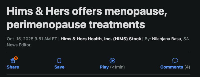 Did you see HIMS 0.00%↑ yesterday? The only thing I could find was that they were offering menopause treatments