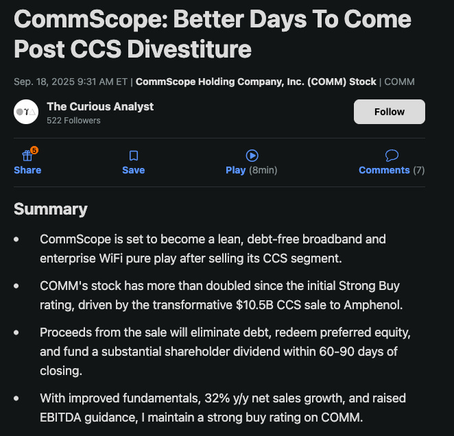 In my thesis for holding a large amount of COMM 0.00%↑ it’s based on a few articles I read from Seeking Alpha.