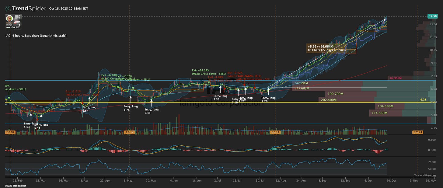 My Alpha Picks portfolio yesterday was up 2.2%. Remember - I’m adding to winners and cutting losers down to the holding % so I may have different results than you. But I also missed out on the big winner of $SSRM which gave me another BUY in the 4 hour algorithm.