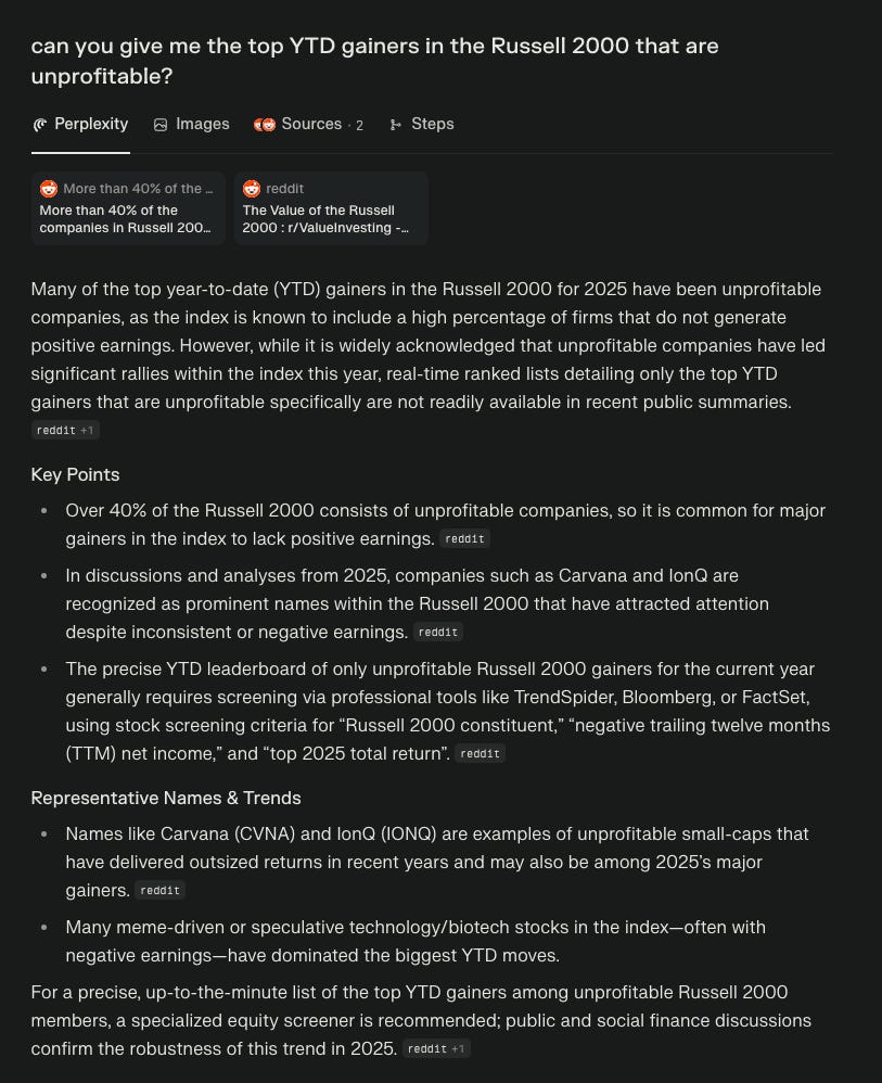 Small caps should outperform, but it’s always risky doing unprofitable small cap stocks.
