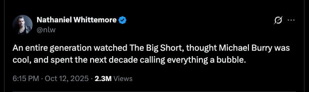 A generation of people grew up watching the big short and want to call the top and short the market when there’s a top.