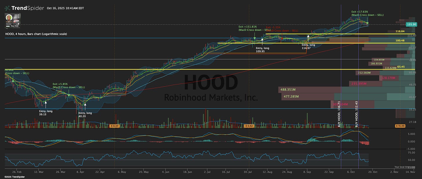 We saw the 4 hour algorithm just get you out of HOOD 0.00%↑ with an 18% gain and it’s down at $133. I think the support level of $116 would be a good risk/reward, but you’d have to expect new all time highs for the thesis to play out.