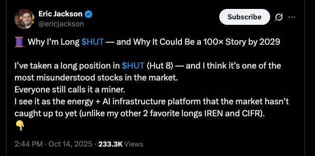 Our guy Eric Jackson has a new position on HUT 0.00%↑ and he outlines it for you