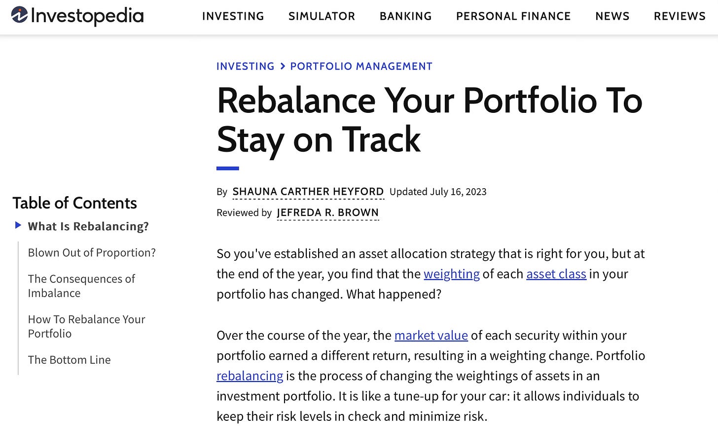 I won’t do as good a job as explaining why YOU should rebalance as this article does - the GOAT INVESTOPEDIA.
